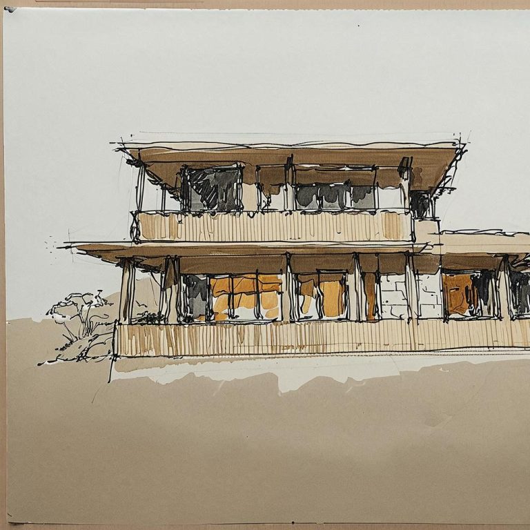 Conceptual sketch with added color to help client visualization and the study of different materials that are readily available on the island.